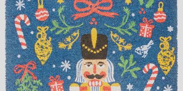 Bring festive cheer to your doorstep with this vibrant coir doormat, featuring a charming Nutcracker design surrounded by candy canes, ornaments, presents, and holly. The rich blue background beautifully contrasts with the bold reds, bright yellows, fresh greens, and crisp whites, creating an eye-catching holiday display. Crafted from hi